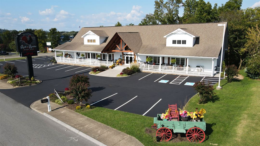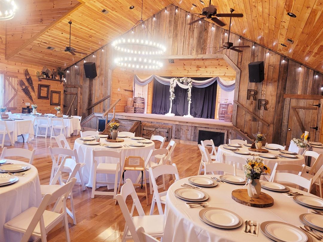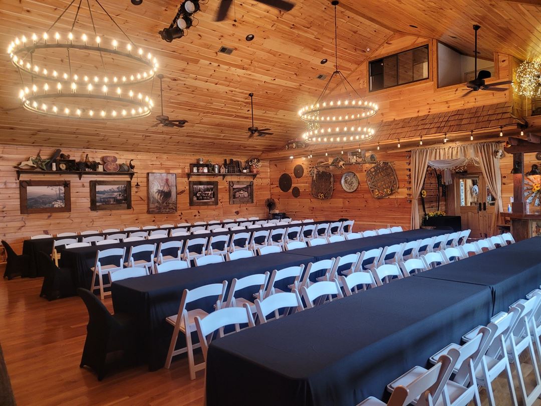 Enjoy rustic charm in the heart of Pigeon Forge, conveniently located just off the parkway. Experience the warmth of knotty pine, authentic barn wood, antiques and tasteful seasonal décor in this family owned, climate controlled events venue. Create the perfect ambience with the included professional lighting, sound and elevated stage.