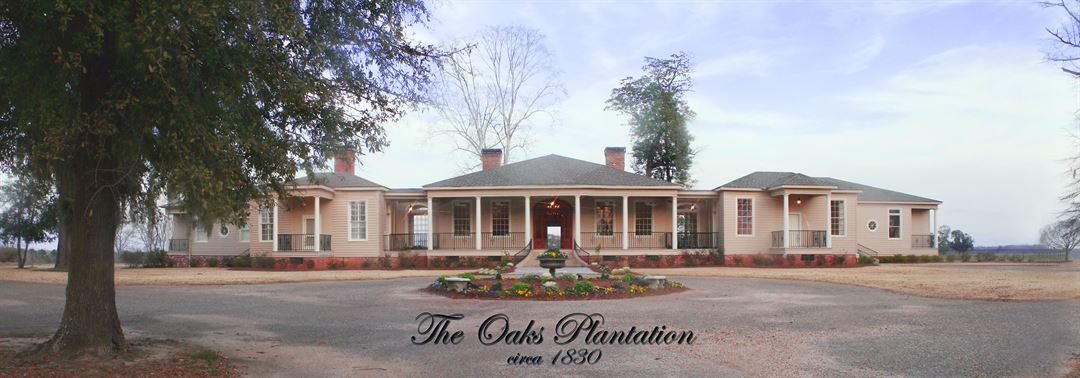 Enter the plantation by way of its large front porch complete with rocking chairs. Take a walk through the sprawling house to the plantation grounds and experience true old Southern charm. The Oaks plantation has beautiful heart pine floors, grand chandeliers, and fireplaces in almost every room. It is large enough to accommodate 200 people inside and many more for outside events.