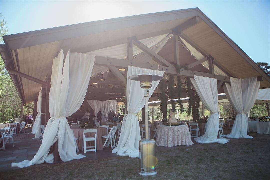 The rustic Timmel Pavilion is an open-air, covered pavilion that offers modern conveniences such as overhead lights, ceiling fans, on-site restrooms, and Wi-Fi. Rentals also include the use of tables and chairs.