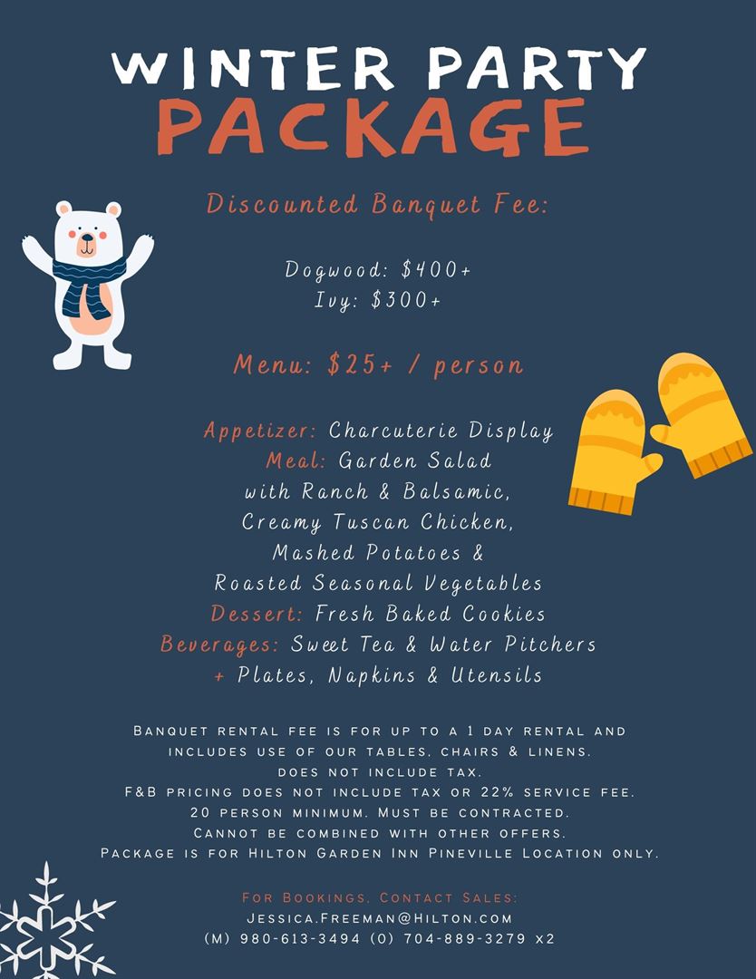 With over 2,000 sq. ft. of meeting space, 112 hotel rooms featuring free WiFi, 24-hour fitness room and outdoor pool, the Hilton Garden Inn stands out among hotels in Pineville, NC. Our Pineville, NC hotel can easily accommodate various groups including reunions, corporate business meetings, sporting teams and wedding groups.