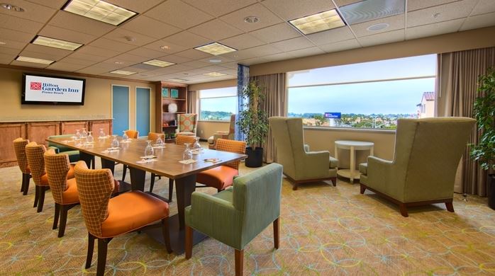 The Hilton Garden Inn San Luis Obispo/Pismo Beach hotel will successfully host your business meeting or social event by consistently delivering high-quality full service catering and providing flexible meeting space. Located halfway between Los Angeles and San Francisco, our Pismo Beach hotel is the ideal beach town getaway on California’s Central Coast. With 1660 sq. ft.of flexible meeting space and additional outdoor and in-suite options we will help you plan the perfect wedding, party or business event. Complimentary high-speed internet access is available as well as built-in audio visual system with descending screen, LCD projector and touch-screen control panel.