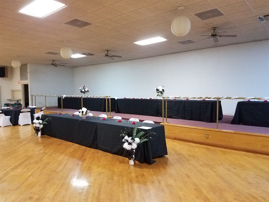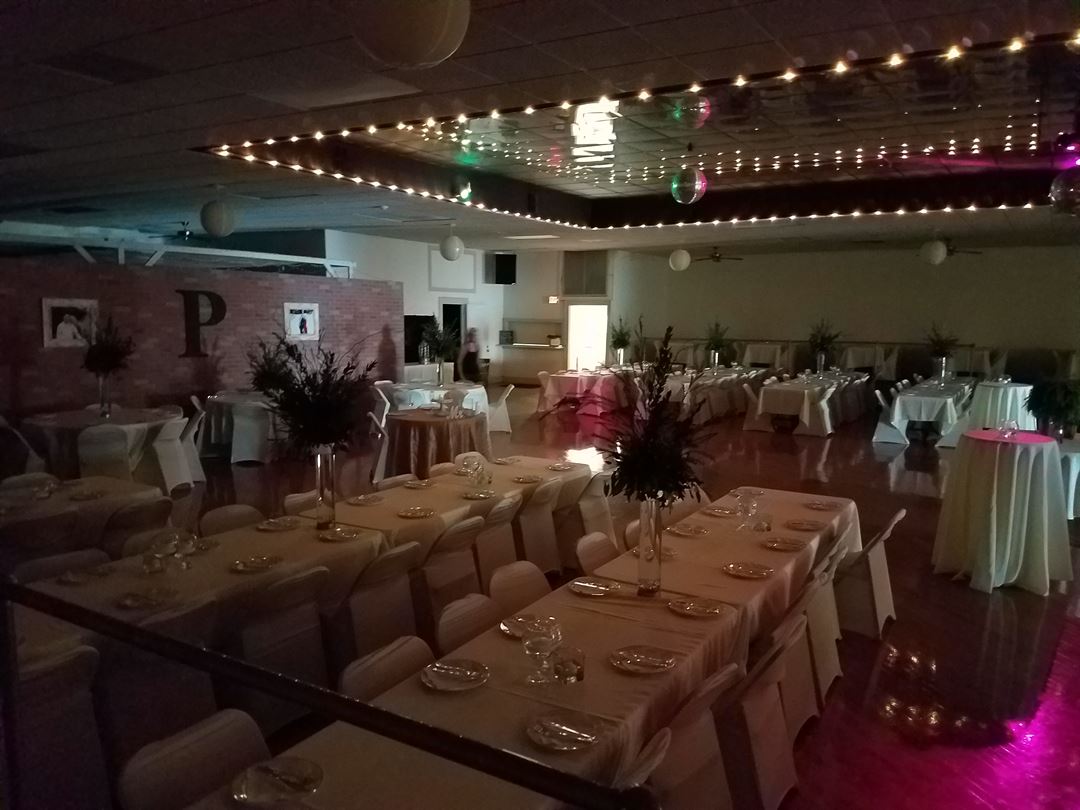 Ballroom Features: 6000 Square Feet, Seating for 400, Elevator, Lobby area, Large Hardwood Dance Floor, Mirrored Ceiling with Rope Lighting, Mood Lighting, Kitchen Facilities, Bar, Large Restrooms, Lobby area.