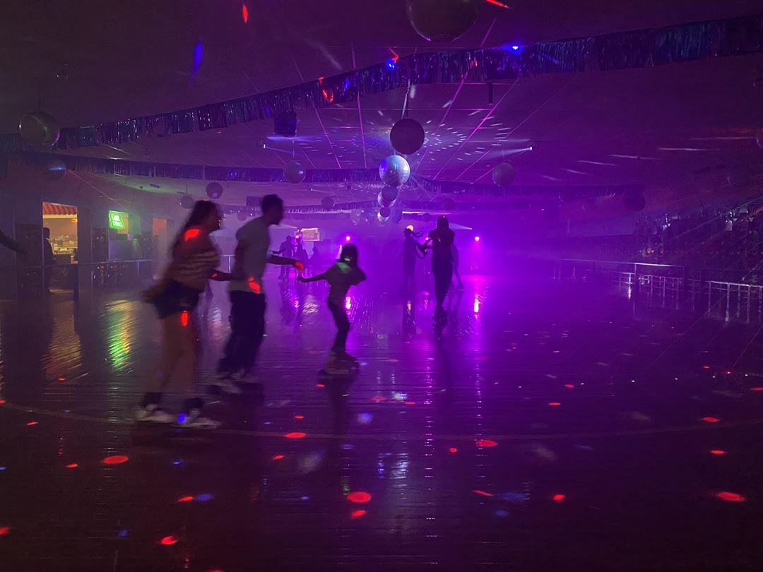 We are a family entertainment center. We offer skates, scooters, bouncy and dance floor. We have a built in dj booth, light show and table settings. We can seat comfortably 100 people in our game room but for larger venues tables and chairs can be placed on the large wooden floor.