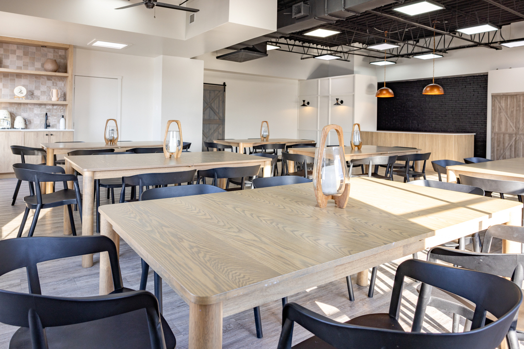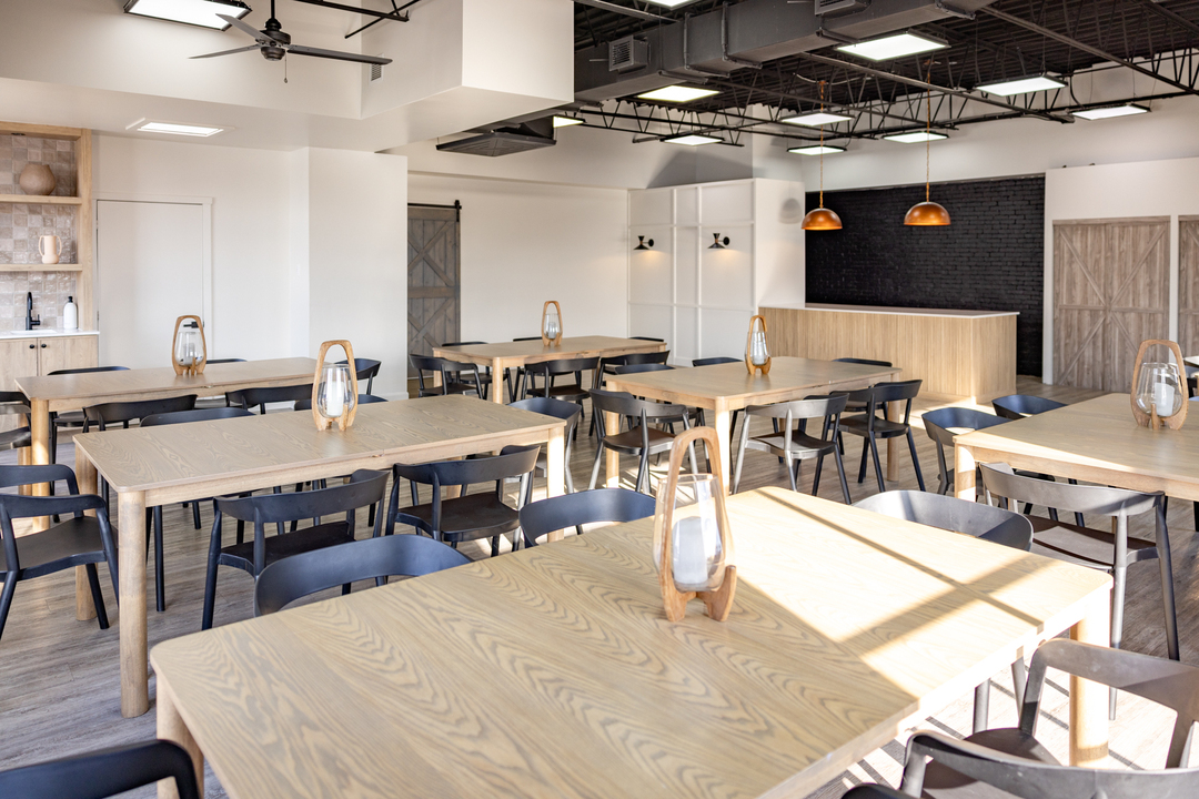 Casa Evexía offers a beautifully designed venue equipped with everything you need to host a seamless and unforgettable gathering. Our space includes 60 elegant dining chairs and seven spacious rectangular tables, perfect for intimate dinners or lively celebrations. Enjoy the convenience of a fully equipped kitchen, featuring a wall oven, microwave, fridge, freezer, dishwasher, toaster, and sink, ensuring effortless meal preparation.