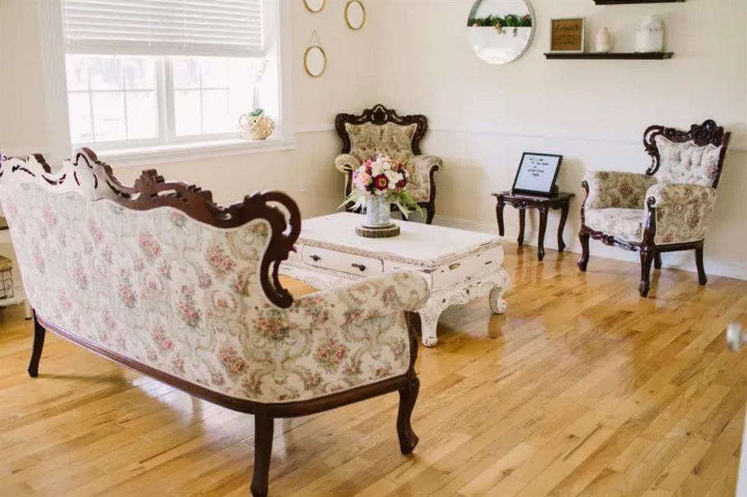 For reception meals, a portable bar can also be provided, an adorable addition that has been fashioned from an antique horse trailer. Two get-ready rooms are also available for the couple to prepare with their wedding parties for the walk down the aisle. The Dream Suite has hardwood floors, gorgeous plush Victorian furniture, and chic vanities with large mirrors. The Gentleman’s Cabin features a bar, coffee maker, comfortable furnishings, and bistro lighting.