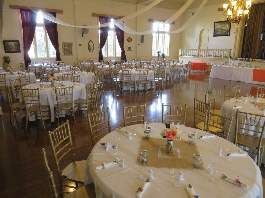 Host your event in our historic ballroom! We have a stage for your DJ or band, a private parking lot for your guests, a kitchen with commercial refrigerator and an ice machine, restrooms, and a private bridal changing area. We do include tables and chairs with the rental. The cost of the rental also includes security the night of your event, and an event cleaner who comes in the following day to mop the floors and wipe down the tables. Our beautiful hardwood floors are waxed between each event to give you the most beautiful dance floor possible!