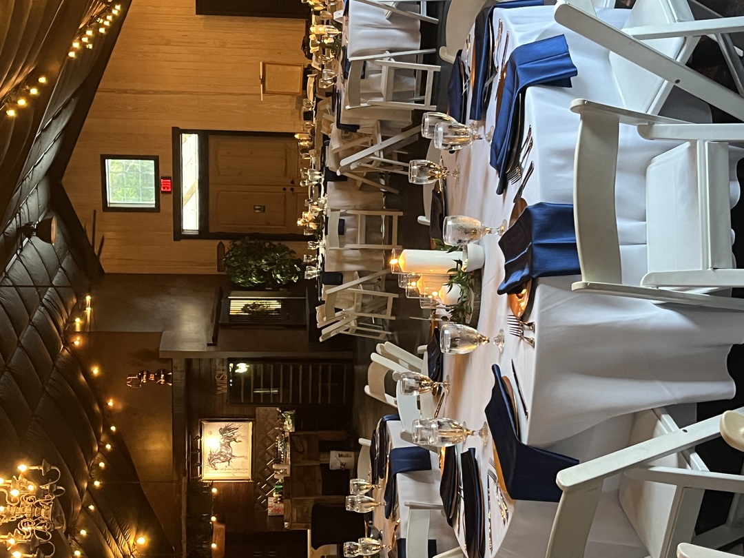 - Table seating for up to 120 people inside