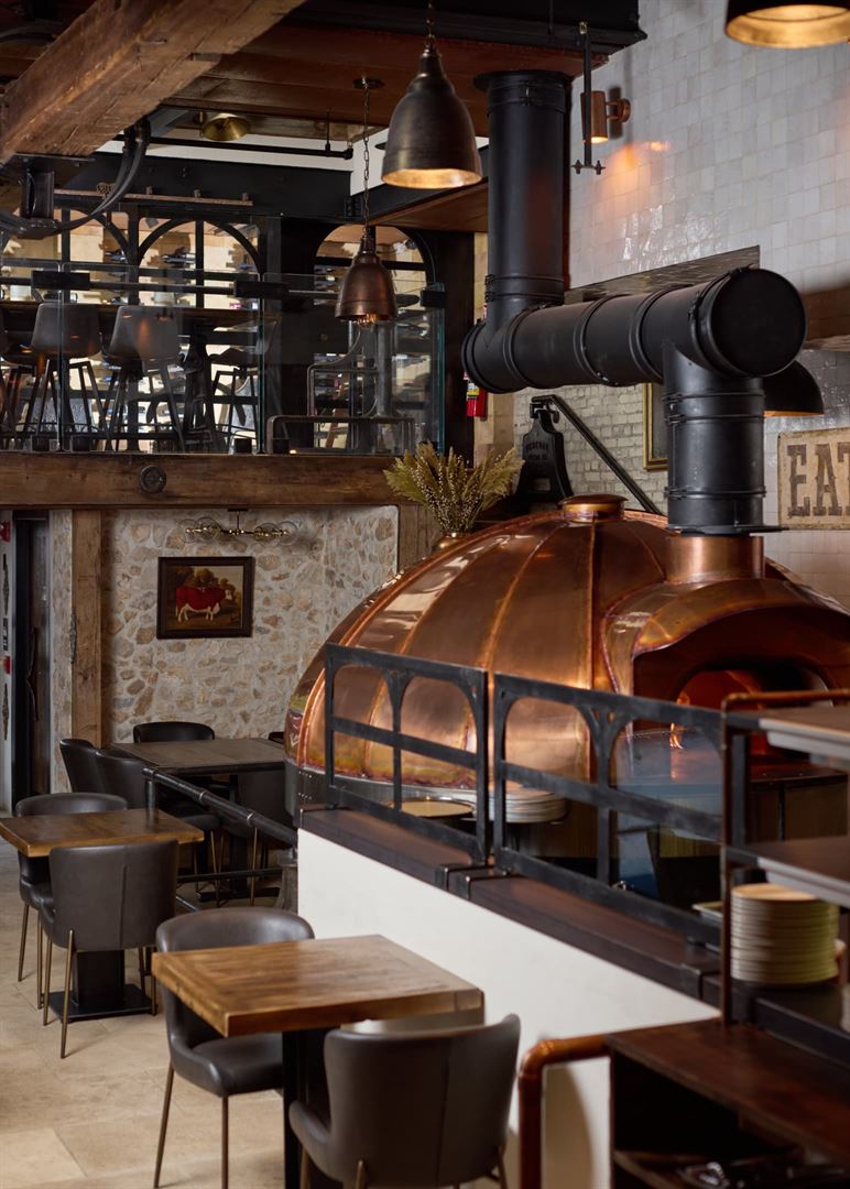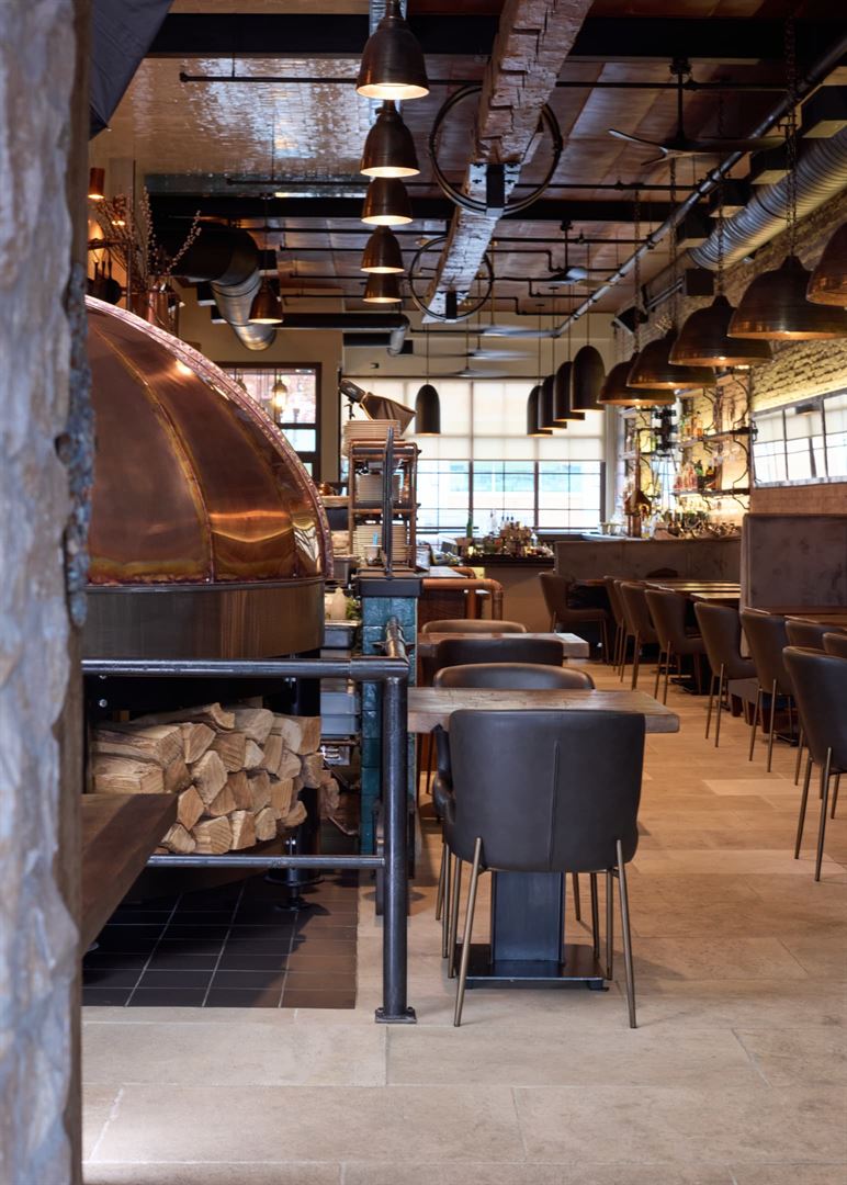 Our restaurant offers a vibrant global fare, featuring a bustling open-concept kitchen. At the heart of our kitchen is a centerpiece wood-fired oven where most dishes are made, providing a unique and engaging dining experience.