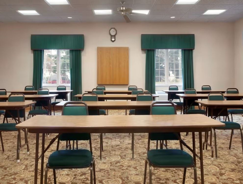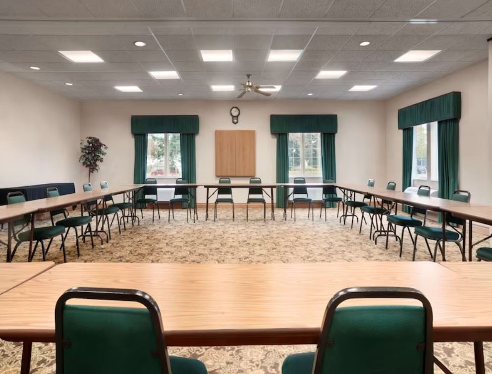 Choose the venue at the Country Inn & Suites, Kalamazoo, MI to hold banquets or business meetings with up to 60 attendees. Located on the ground floor, our two meeting rooms offer versatile seating arrangements with amenities like audiovisual equipment rental, a pull-down screen, and free Wi-Fi.