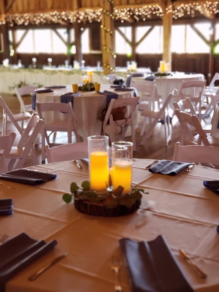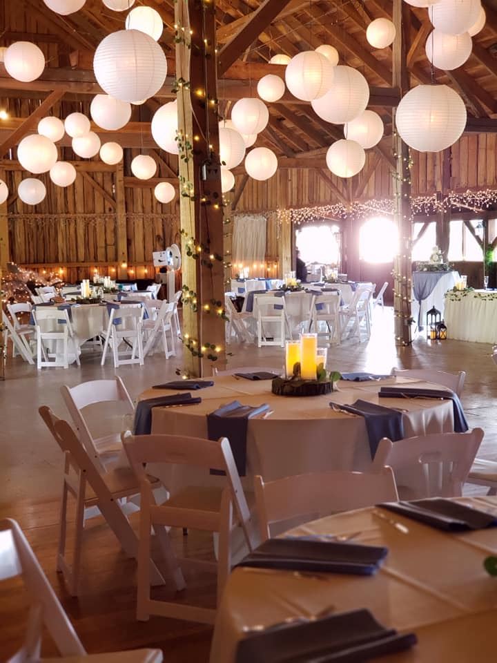 Our barn was built in 1999 by a small group of local Amish workers. The original size was 40’x80’ and had a lower level and upper level. Betsy’s Barn now features a large wrap around porch completely under roof that houses modern bathroom facilities, a bar area, open air lounge and a glass enclosed deck. This gives you approx. 7000 sq. feet of rustic beauty!