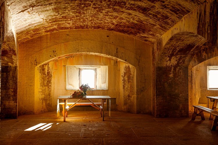 Our 16-acre island venue combines stunning coastal beauty and rare historic stone architecture to create a wedding adventure that couples and guests will never forget. Fortland is located within the grounds of historic Fort Scammel on House Island, just a 10-minute boat ride from downtown Portland.
