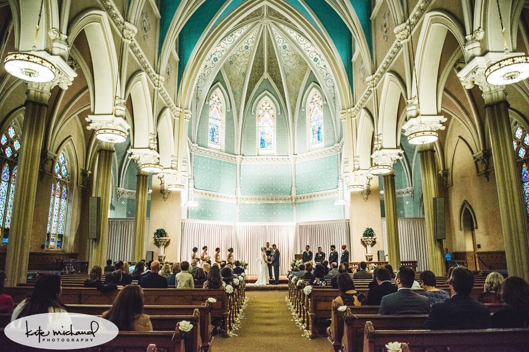 Our stately, majestic building is a perfect venue for your unforgettable wedding day. The upper level (former sanctuary) has spectacular 60 foot cathedral ceilings, elegant wooden pews, a long traditional aisle, beautiful stained glass windows and historic bell will enthrall you and enchant your guests, creating a wedding celebration you will cherish forever!