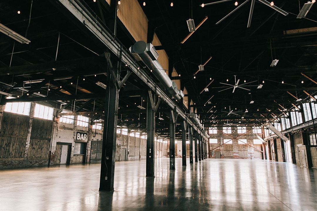 Brick South: A soaring industrial space with warm brick walls, steel beams, and polished concrete floors—perfect for weddings, galas, trade shows, and events that need room to dream big.