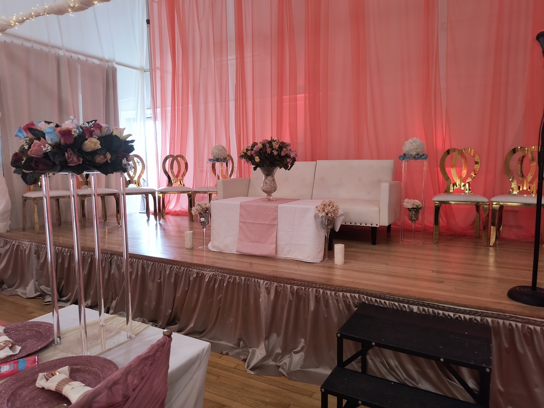 For larger events, the Banquet Hall is the perfect setting. It features a stage, a beautiful hardwood floor, and stylish chandeliers, creating an atmosphere of grandeur and opulence. The ballroom can seat up to 200 guests, making it an ideal space for weddings, conferences, or other large-scale events.