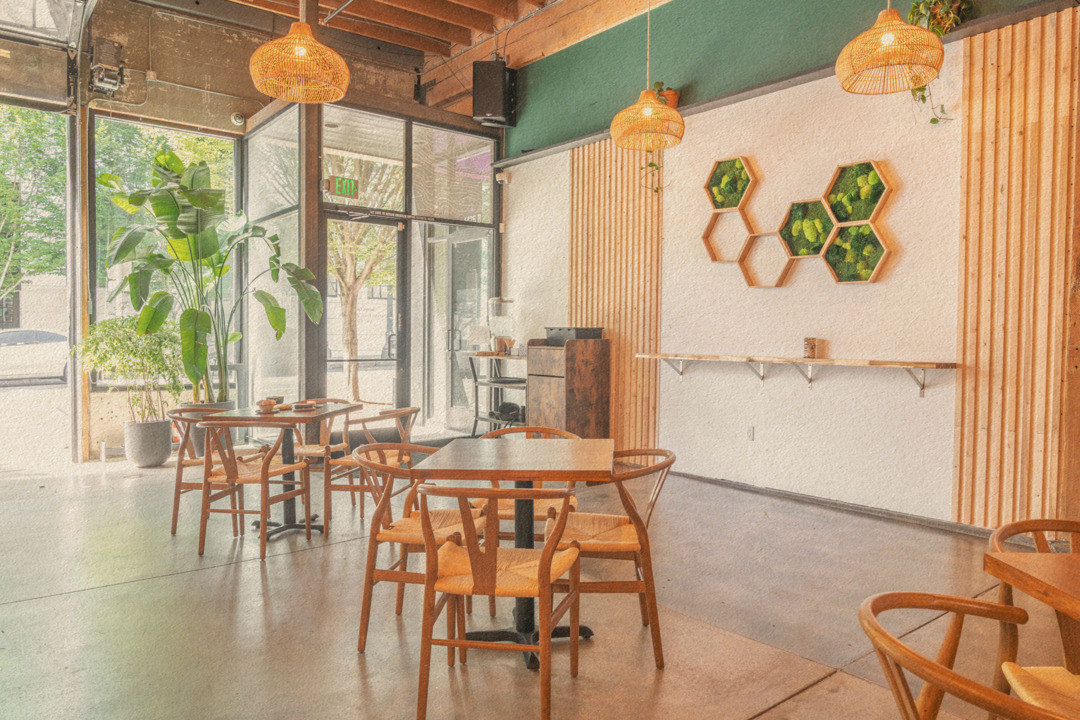 Step into Secret Grove, a hidden tropical event space designed for connection. Plush upholstered booth seating is nestled among real tropical plants—some shipped straight from Colombia—creating an intimate, vibrant atmosphere. A large garage door opens to let the outside in, and a prestigious audio system transform the space for any occasion. A dedicated performance booth, espresso machine, and full bar are ready for your gathering, with two onsite unisex ADA approved bathrooms for guest convenience. Secret Grove & Matta Cafe is ideal for lively gatherings, soulful dance nights, professional conferences, and unforgettable celebrations within a lush, intentionally crafted environment.
