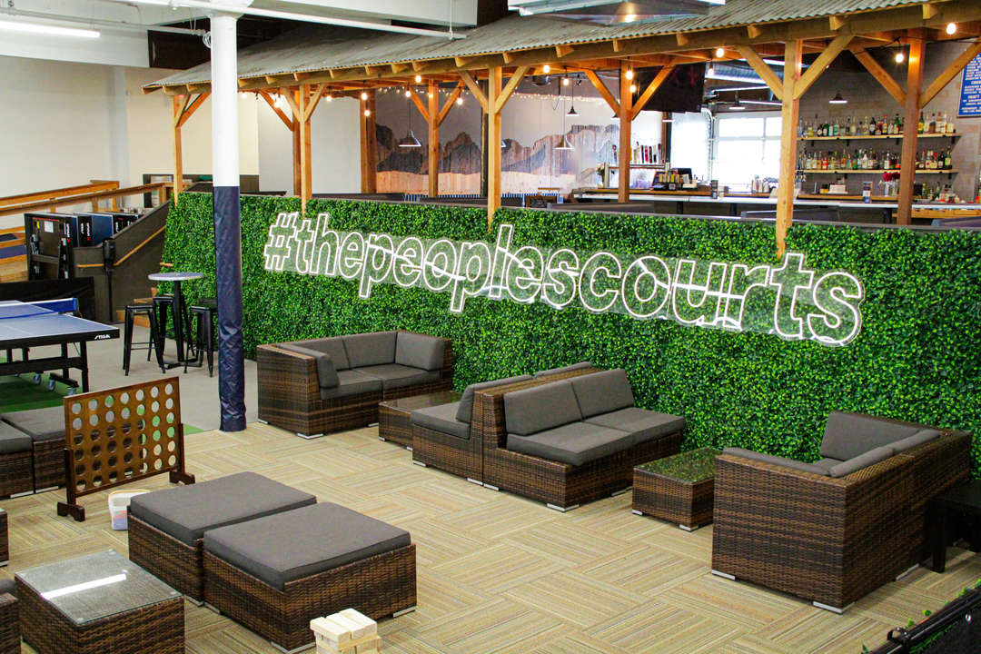 TPC's 48,000 sq ft facility features 5 indoor pickleball courts, 6 outdoor courts, 6 cornholes, 5 bocce courts, 10 ping pong tables, and blacklight axe throwing, in addition to our fully loaded arcade, sports viewing theater, and plush lounges with board games and giant jenga. There's plenty of fun for everyone here at The People's Courts.
