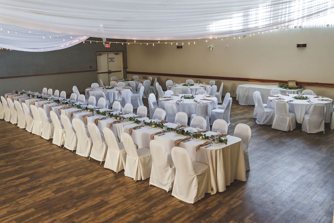 Our fully air-conditioned facility features a covered drive-through entrance, spacious dance floor, elevated stage, and a fully equipped commercial kitchen ready to meet the needs of any chef or caterer.