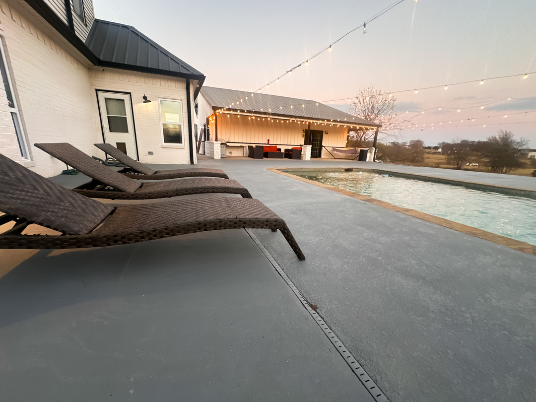 Host your next event on a scenic 9-acre ranch featuring rolling hills and stunning sunset views just outside Gunter, Texas. Sahvana Ranch offers flexible indoor and outdoor spaces for up to 80 guests, ample parking, and modern amenities. Perfect for weddings, parties, and family gatherings, with a pool, kids’ play area, fire pit, and more. Enjoy a blend of privacy, natural beauty, and upscale comfort—ideal for unforgettable celebrations.