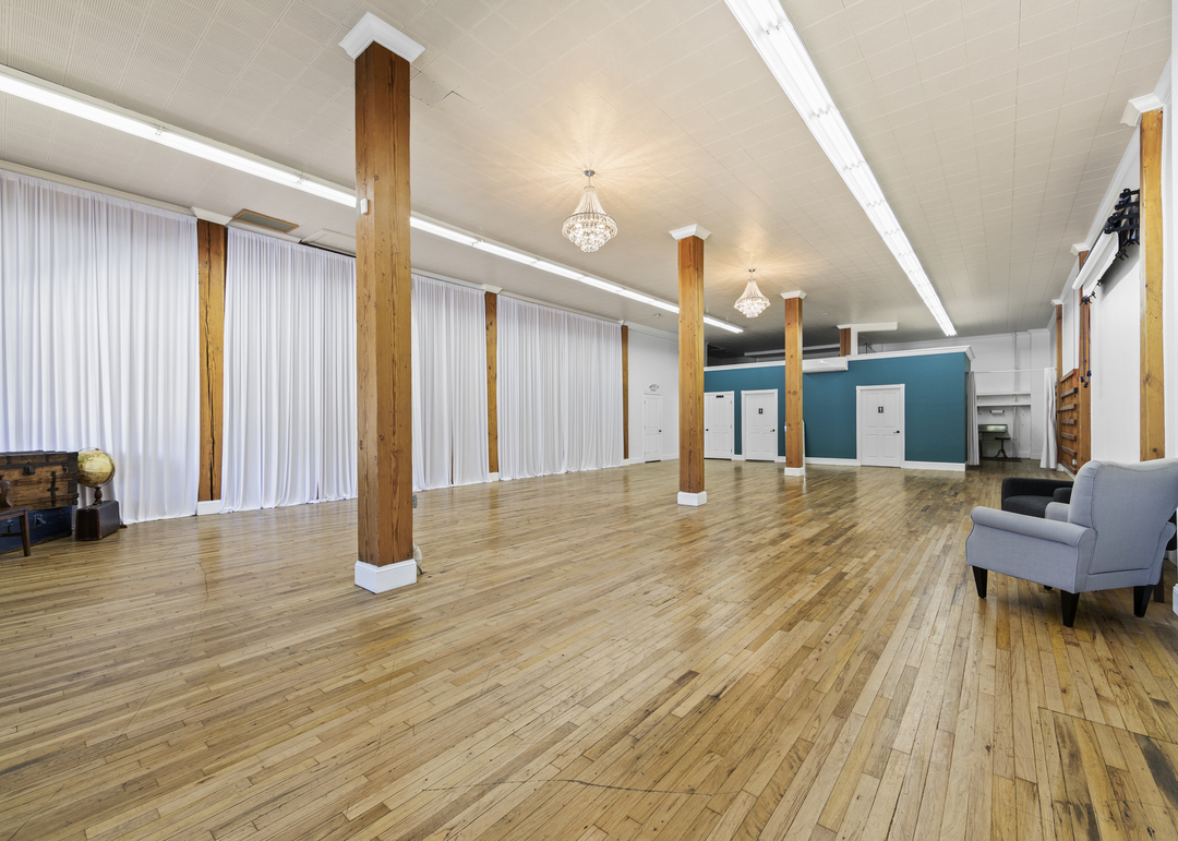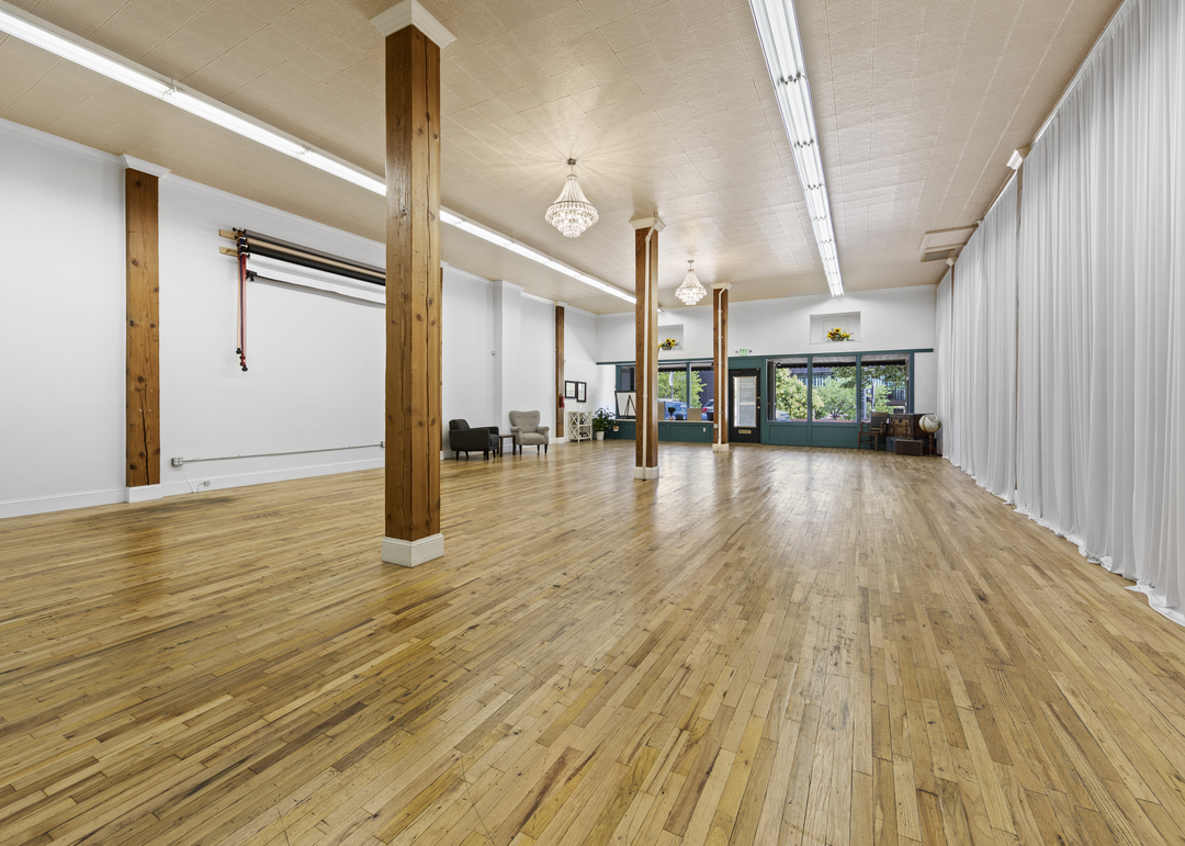 Located across from the Pueblo Library, this bright, versatile space features tall ceilings, chandeliers, wood floors, a kitchenette, and two restrooms.