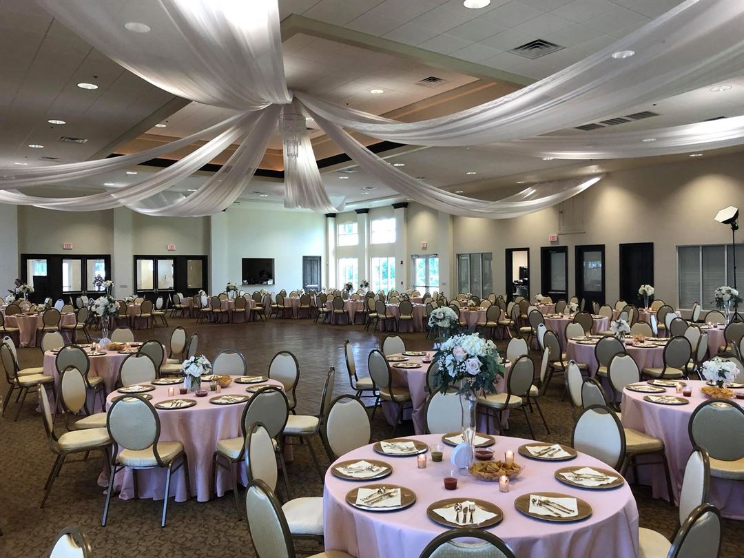 The Event Center is an elegant multi- functional event space located in Port Charlotte, FL. It has a guest capacity that ranges from 1-384 (320 with 20’ x 40’dance floor) with 60” round tables of eight. Additional features include a full commercial kitchen, parking to accommodate all your guests, comfortable rest rooms and changing rooms for bridal parties.
