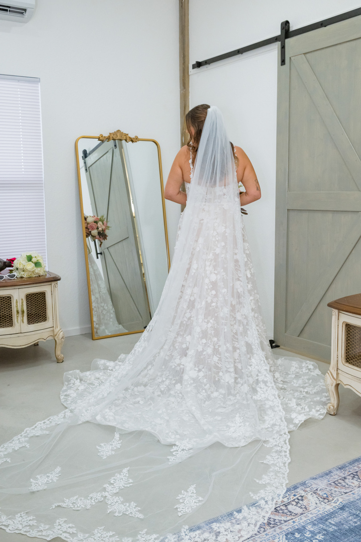 Nestled on 10 acres of picturesque Florida land, Whispering Palms Barn is a stunning white event barn surrounded by lush landscapes and whispering palm trees. Our charming venue offers breathtaking country views, making it the perfect setting for your special celebration.