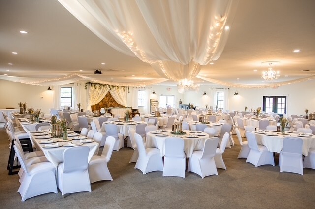 Nestled on our 4 generation family farm, The Homestead of Radnor, could be the perfect backdrop for your wedding or group event! Located in Delaware, Ohio, our beautiful, all season banquet facility, seats up to 300 people indoors. In addition, guests have the option of venturing outdoors to the beautiful paver patio and manicured lawns which overlook our wooded wedding area and 100 acres of rolling farm fields. There are picturesque views from every angle that change with the seasons. If you need more space for larger group events, tents could easily be set up outdoors. The possibilities are endless!