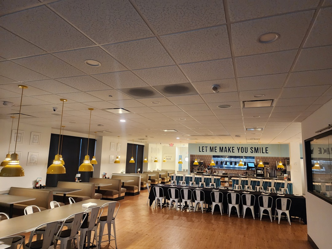 We offer you a vibrant, bright location with plenty of space for small gatherings to large parties, wedding receptions or rehearsal dinners, graduation parties, corporate meetings, and much more. We have seating for 168 for you can have an open floor plan that can fit over 180 easily.