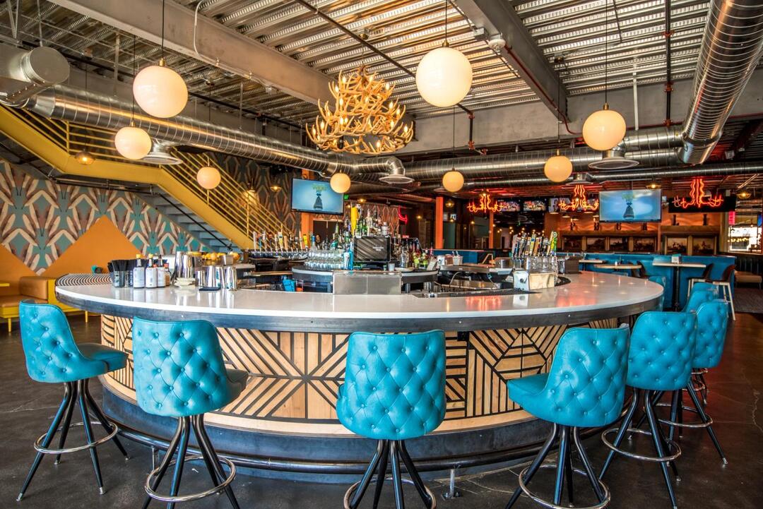 Punch Bowl Social features 3 Bars, 6 Bowling Lanes, 2 Mini Bowling Lanes , 2 Washers Sets, 2 FooseBall Tables, 2 Karaoke Rooms, Bonzini, 2 Giant Jenga Sets, 80s Arcade, Ping Pong, 3 Dart Boards, Giant Scrabble, Table Shuffleboard & Cornhole.