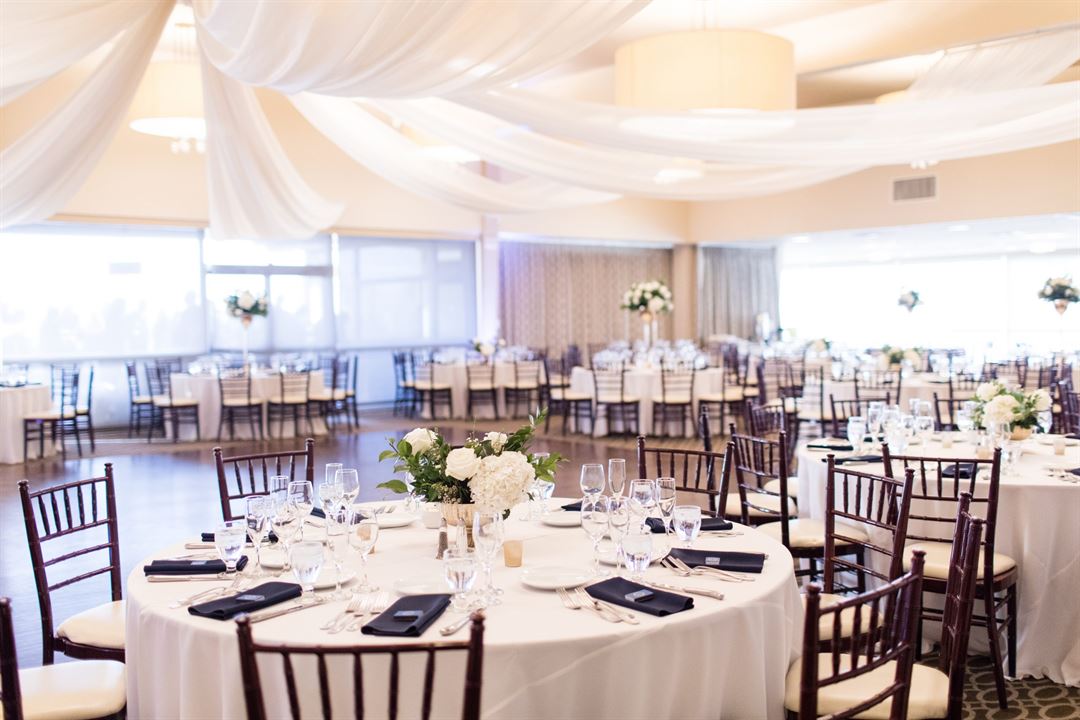 Amidst all this beauty everyone will want to stay outdoors a little bit longer, so hors d’oeuvres can be set up under the shade of the Terrace’s awning. When it’s time for the reception, guests flow into the Vista Ballroom, with seating for well over 300 guests, where two walls of floor-to-ceiling windows keep the gorgeous views at hand.
