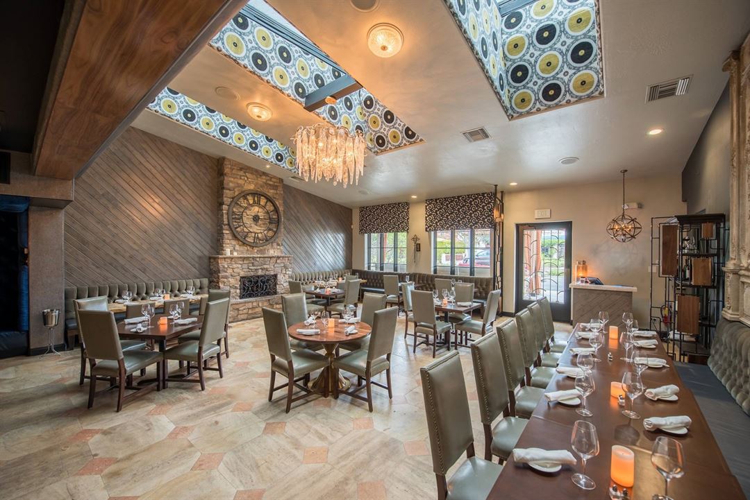 Nick & G’s features a completely private dining space with custom-built banquet seating in combination with free-standing tables set in the design of the restaurant, featuring a mix of modern luxury and classic elements.