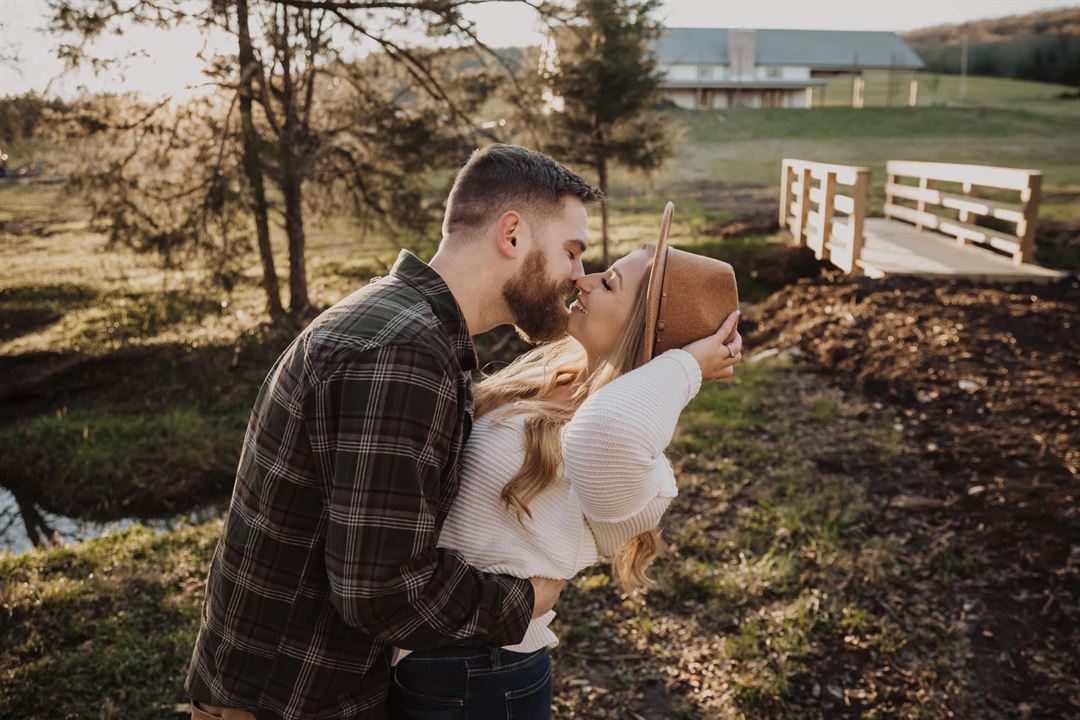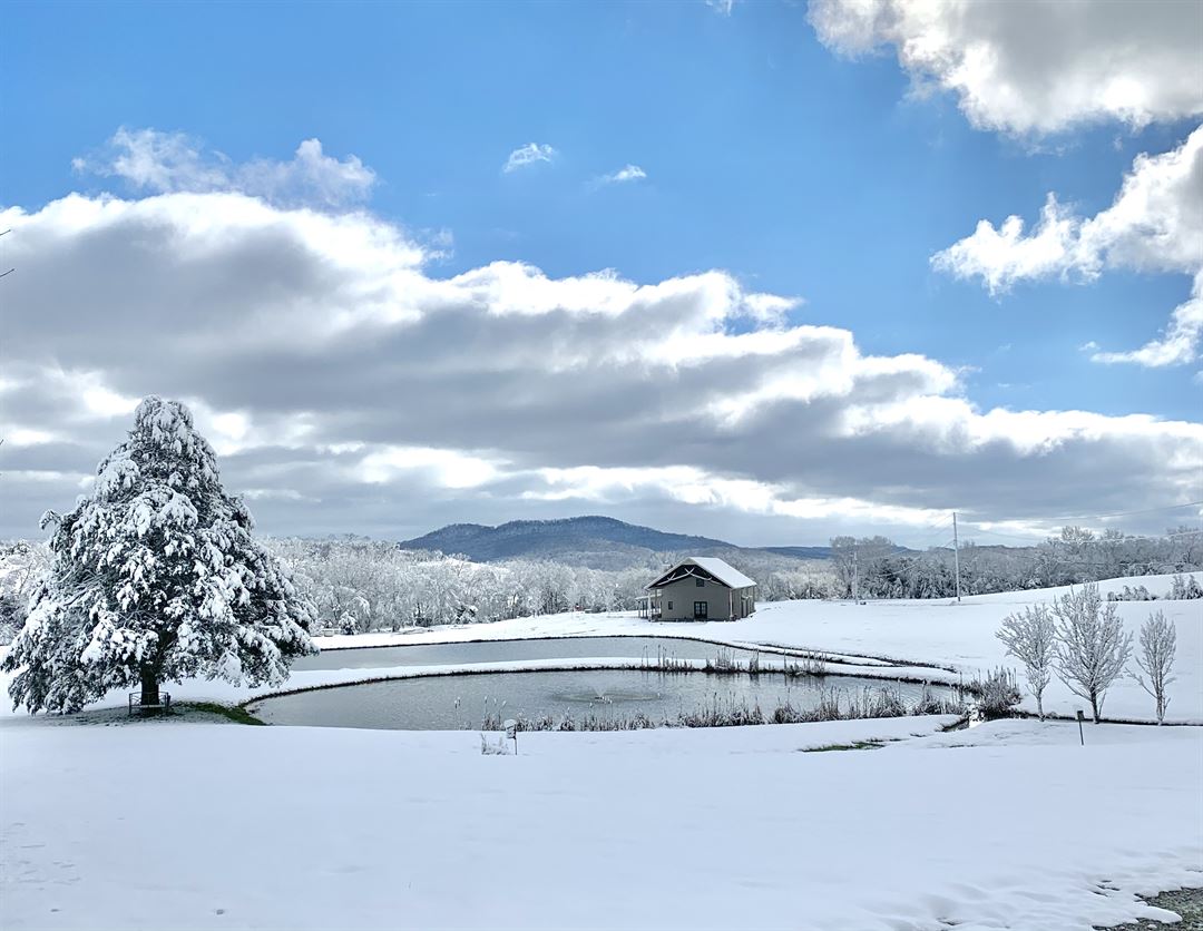 The ceremony courtyard has string lights and offers sunset views of the rolling hills. The large covered porch has a gas fireplace, making this space perfect for a cocktail hour or inclement weather ceremony location. Use of the ceremony arbor, 4 whiskey barrels and 2 large wooden spools are included. There are plenty of locations on property for ceremony location, wedding photos, and engagement photos.