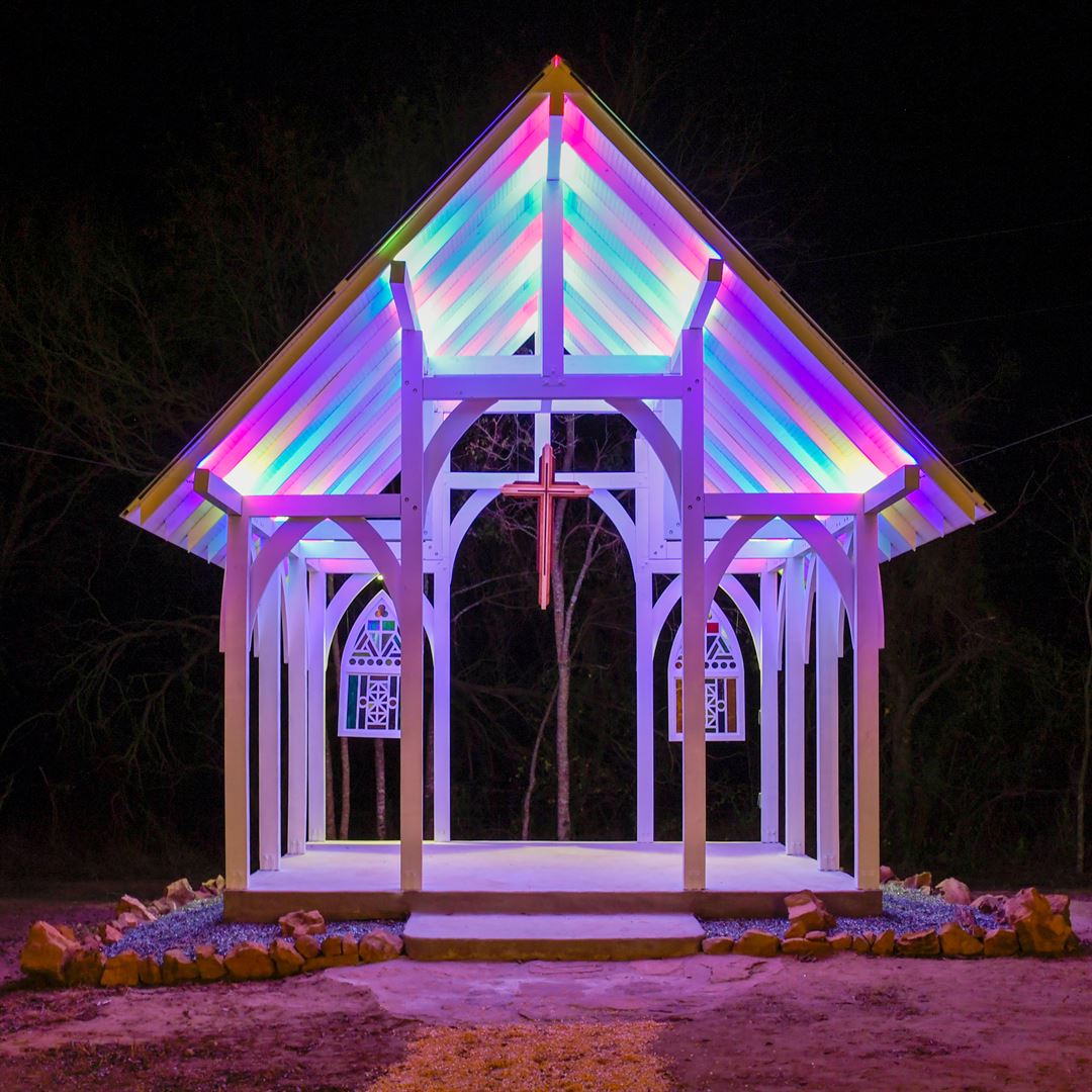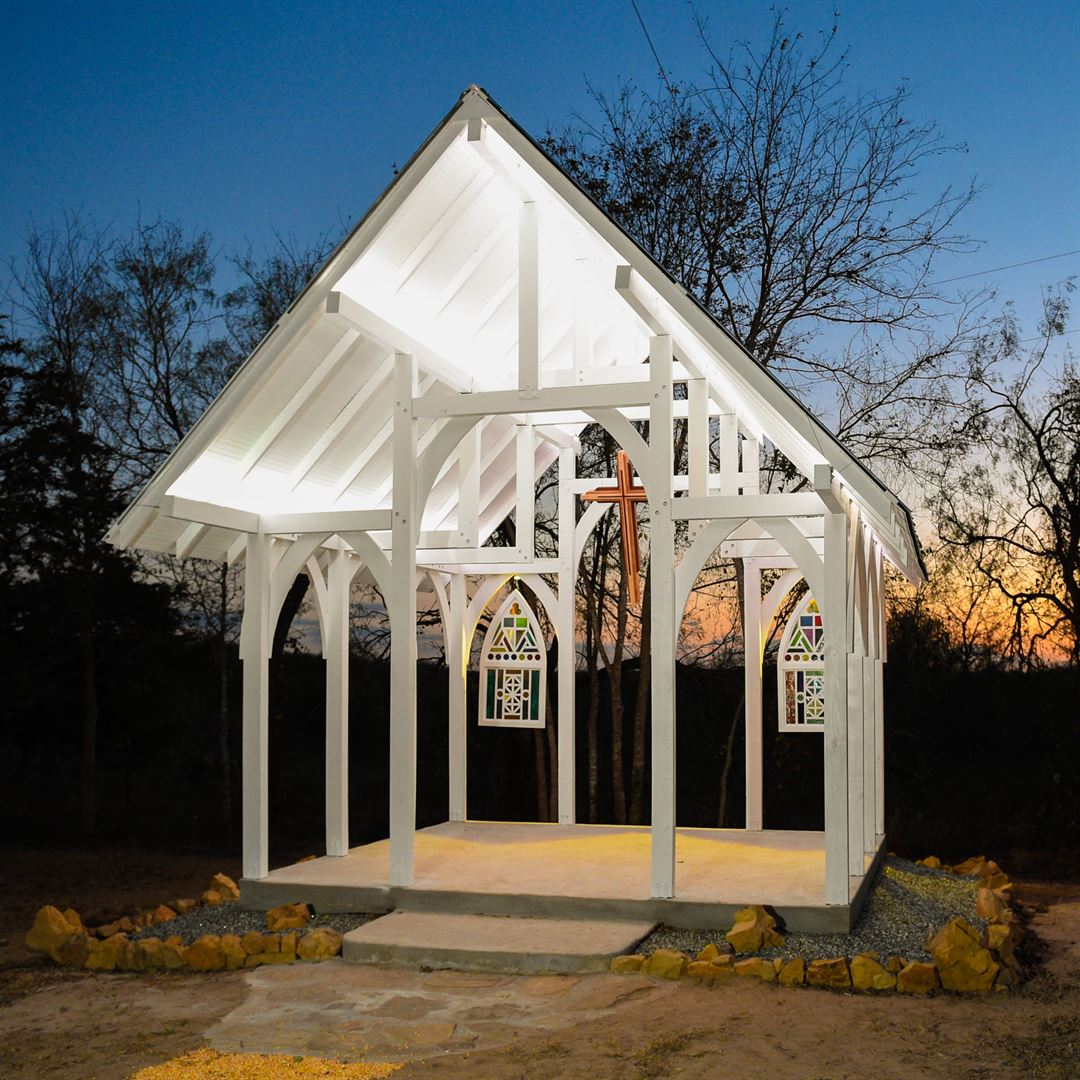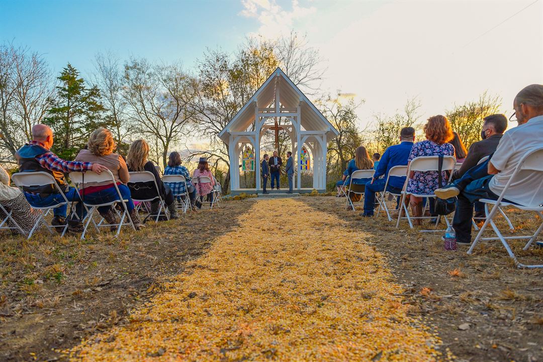 The open air chapel was exactly what we wanted- beautiful stained glass, tin roof, white pillars. The property has many photo opportunities. Our favorite was the rustic tin background where the aisle opens.