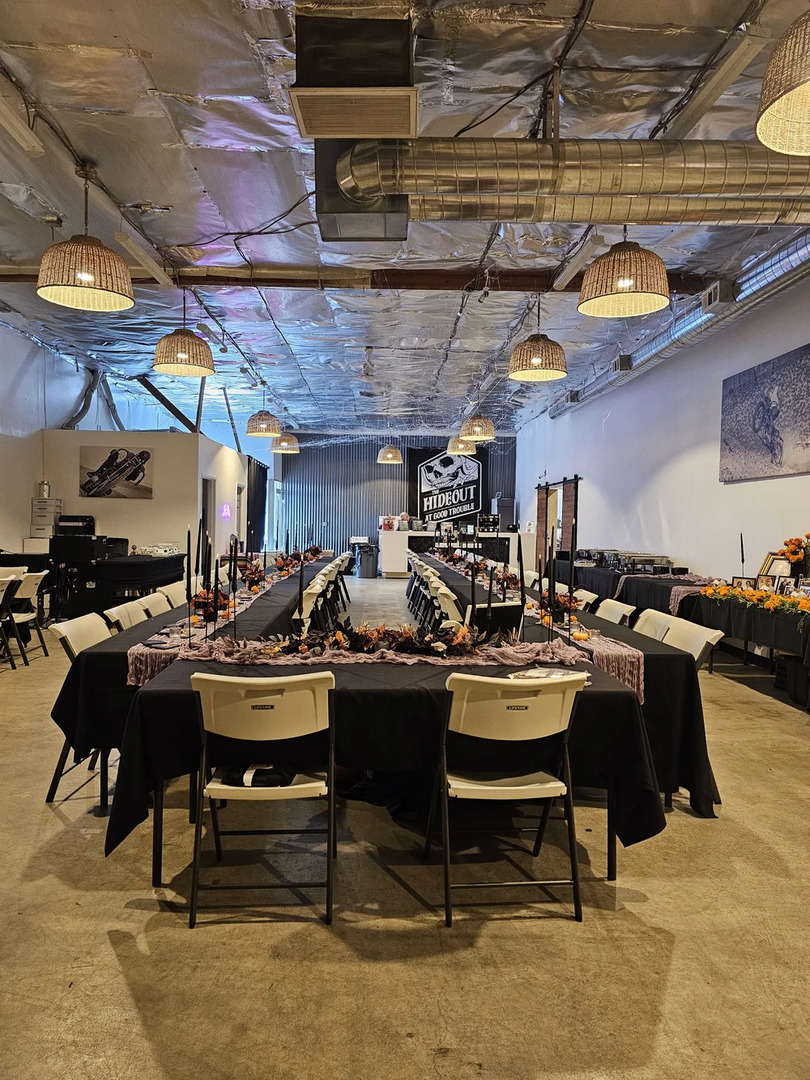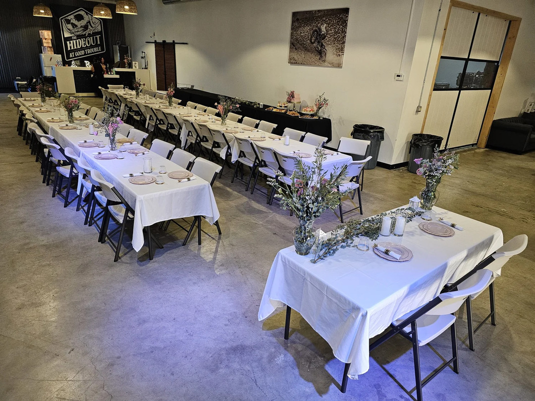 Thank you for choosing The Hideout at Good Trouble for your special occasion. We are truly a family-run, family-operated event space and our heart is simple: our family taking care of your family on one of your most important days.