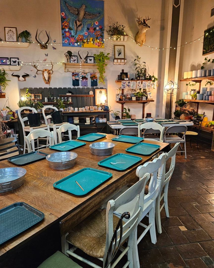 We're a coffee shop and plant shop in a historic building. We've hosted company team building events, holiday parties, birthday parties, bridal and baby showers. We offer succulent planting bars for activities, a coffee bar, and a unique space filled with plants!