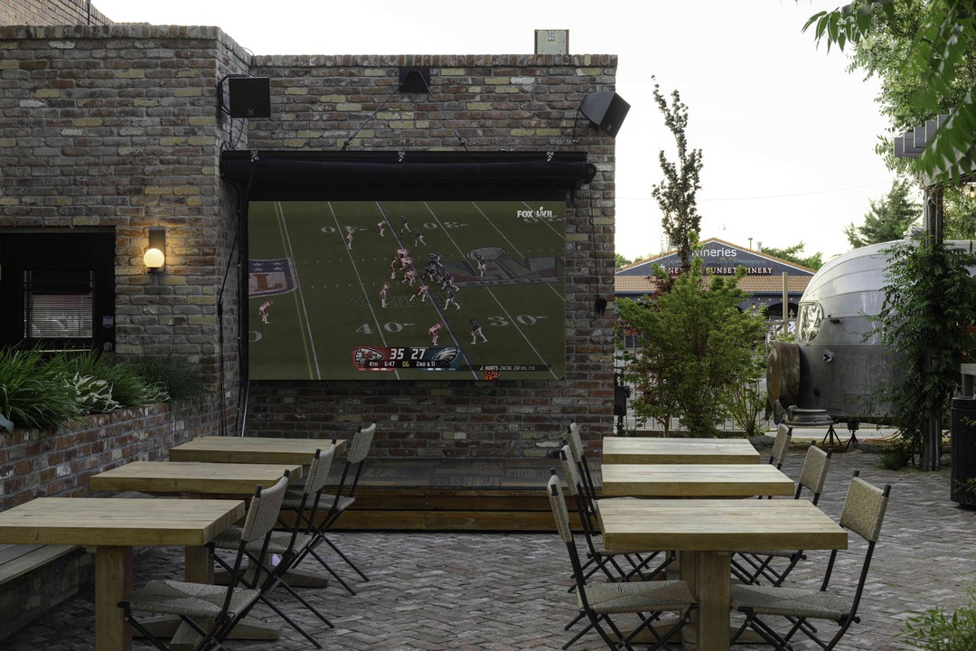 Inside the bar, your guests can enjoy darts, pool, and gaming machines in a relaxed atmosphere. The shaded back patio is home to a retrofitted Airstream food truck, Dumpling Queen, which serves soup dumplings, bao buns, and hot dogs. Outside food and catering options are available upon request.