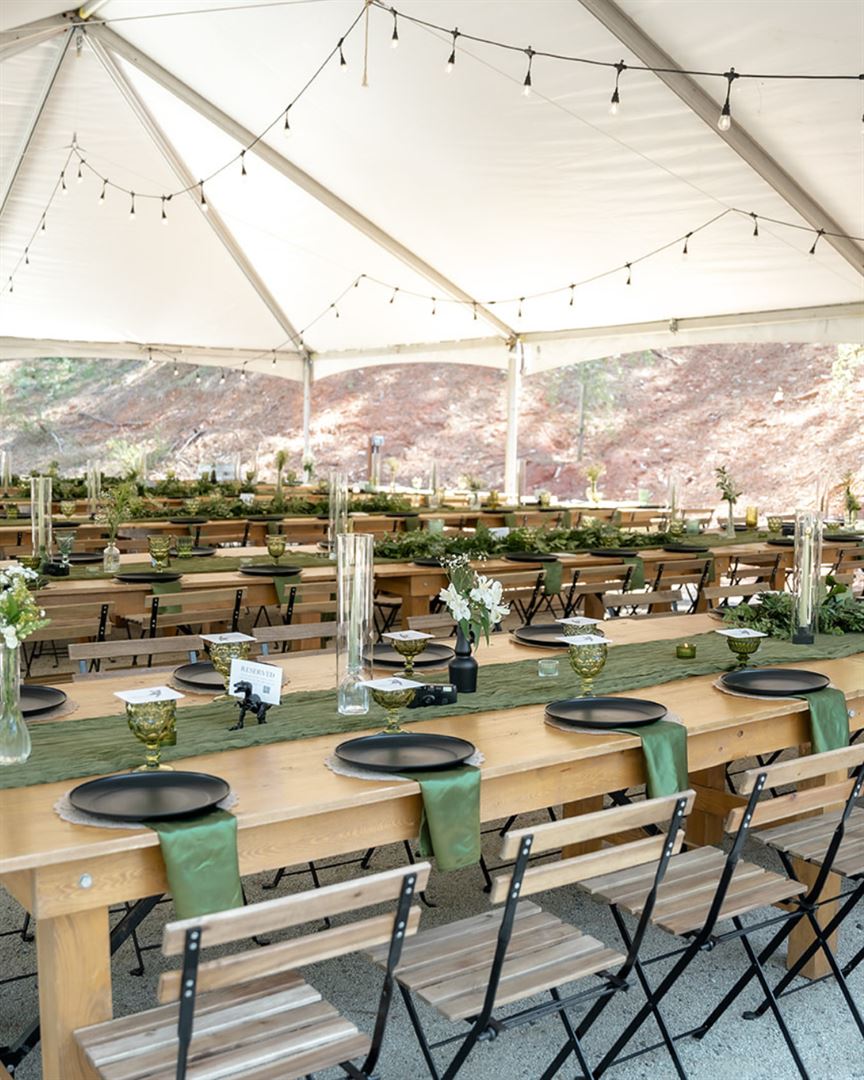 Lake & Wood is a private wedding venue in El Dorado. Our beautiful event space sits at the feet of towering pine trees, overlooking a private 50-acre lake. This serene location is an intimate place to get married, fitting for the artful soul who is a lover of nature and exquisite things. Gather your people and host a memorable outdoor wedding featuring curated dining and a mobile craft cocktail experience.