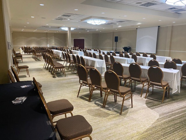 We have over 13,000 square feet of meeting space. The Texas Star, the largest ballroom, accommodates up to 400 people for a sit-down dinner and dancing. The largest dance floor is 24 x 24, which offers plenty of room for your guests to dance the night away. We can provide projectors, screens and other essential technology, tailored for your event, with pricing upon request.