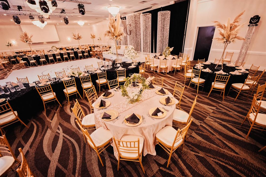 We have a beautiful recently renovated grand ballroom that can accommodate up to 350 guests. We have a total of 7 meeting/venue areas. Two of our larger rooms can split into sections of three. The Venue South has an oversized Atrium where we have accommodated up to 500 guests.