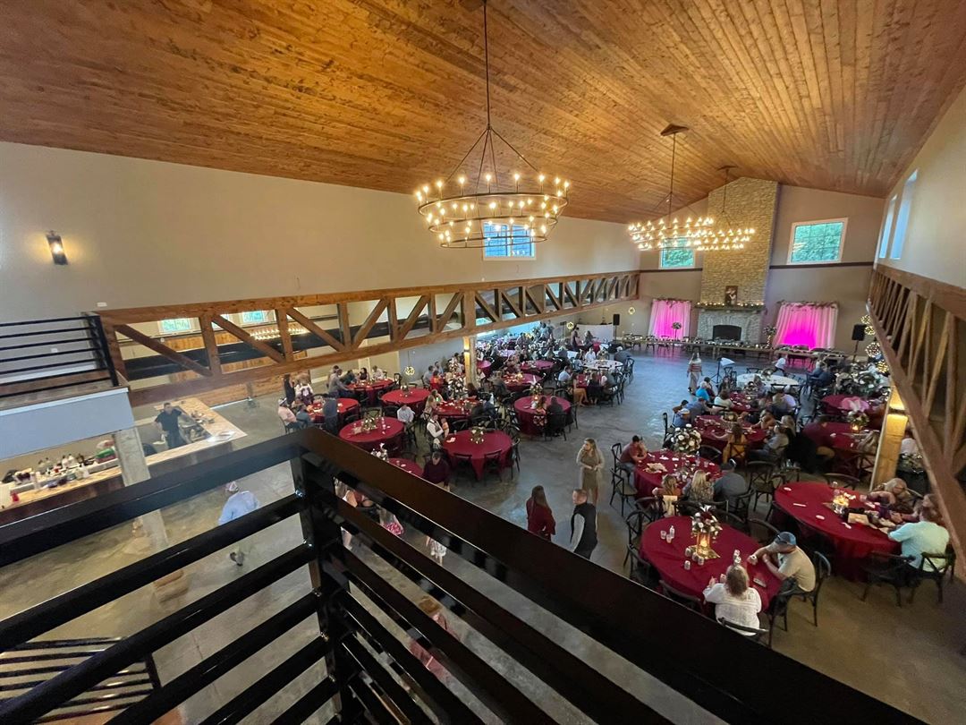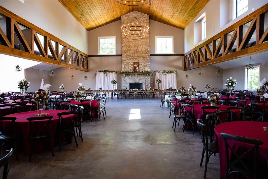 The Ridge is a stunning new rustic, modern and industrial venue located in Richmond, Missouri sitting on 20 acres surrounded by beautiful tree's and breath-taking panoramic views of the Missouri River bottoms. The Ridge is an open canvas for wedding ceremonies, receptions, corporate events, banquets, reunions, large parties and anything else you can imagine. The Ridge provides the perfect setting for an unforgettable wedding ceremony + reception. Your guests will be seated among the beautiful trees and scenery as they wait for you to make your way down the path to the arbor. The arbor can be adorned with chandeliers, flowers, fabric, or nothing at all! You don’t need much decor at The Ridge due to the attention to detail, both indoors and out.