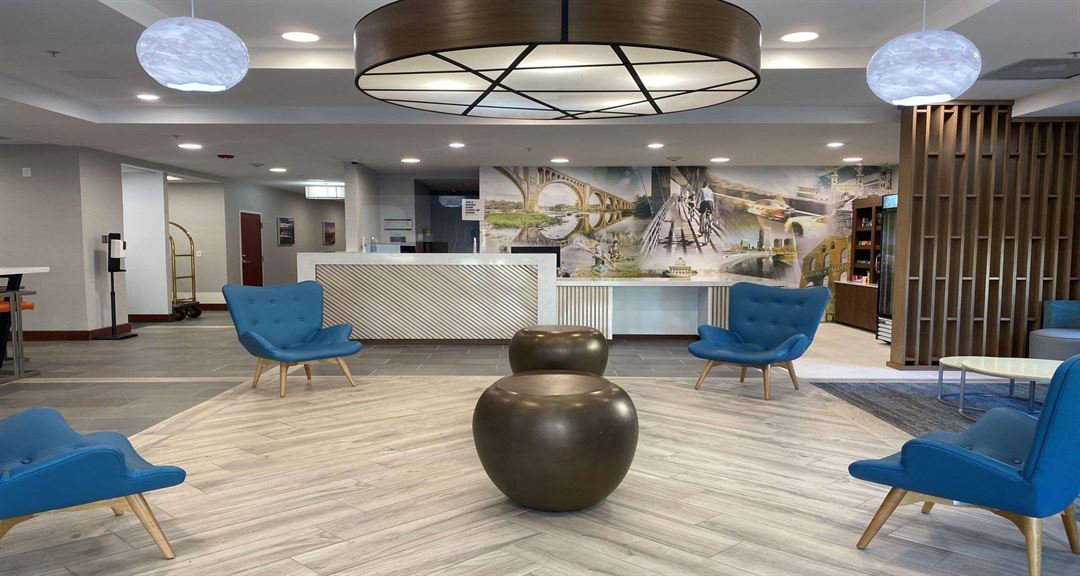 The Hotel offers free parking, over 3500 square feet of flexible event space, The Victory Bar and Grill on-site, modern yet comfortable guest rooms, and two suites.