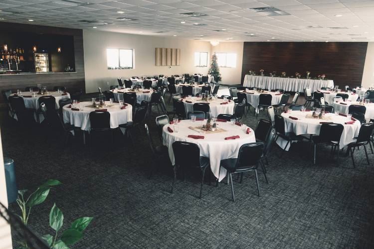 Our Grand Ballroom, located next to our Steakhouse, is the perfect choice for couples looking for a Madison area wedding venue or those looking for an event space to host bridal or baby showers, engagement parties, rehearsal dinners, business events, holiday parties, class reunions, and much more! The Grand Ballroom is well-equipped for any business or family event, up to 200 guests.
