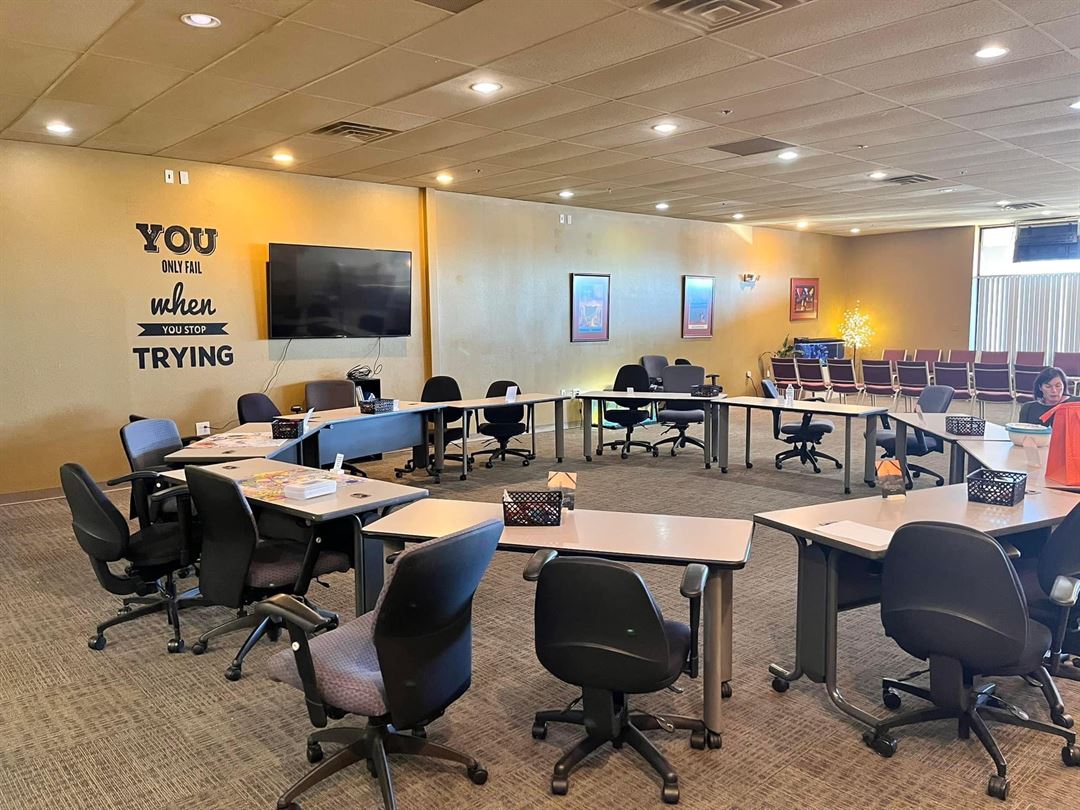 Great facility for events and even sleep over events! Two bathrooms, very open floor plan, 75 inch wall mounted tv, coffee snack drink area! Tables and chairs included if needed! Very nice decor!