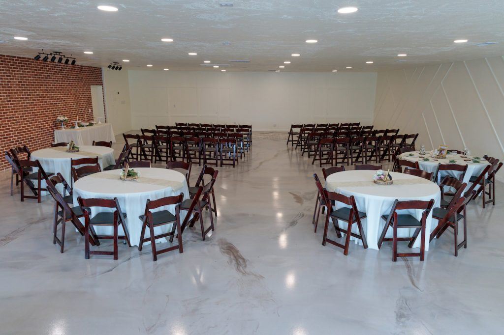 Nestled in the heart of Riverton, Utah, our event center is designed to inspire & elevate your gatherings. The moment you step into our space, you’ll be greeted by the warmth of our brick accent wall, the contemporary elegance of the opposing geometric wall, & the stunning floor. These architectural features provide a unique backdrop, creating an ambiance to complement your vision.