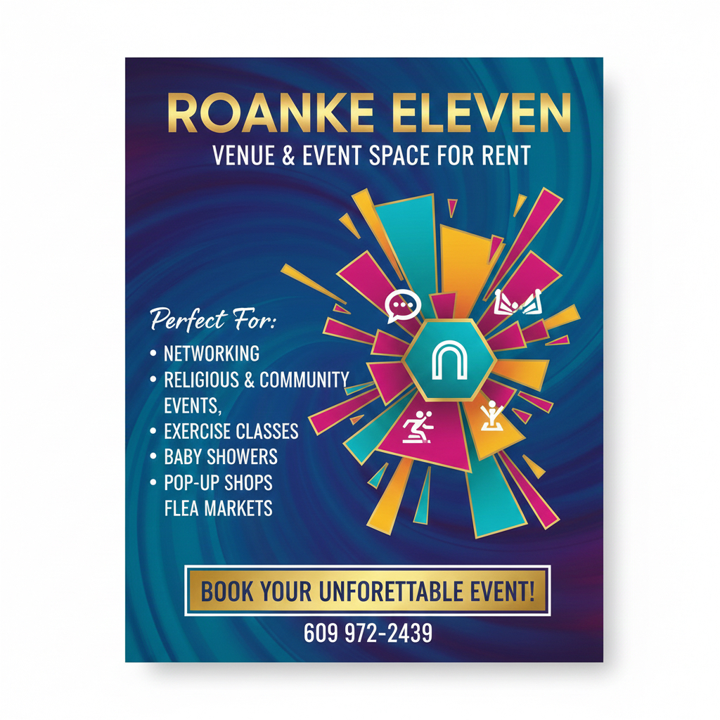 Baby showers, Networking events, Exercise classes , religious assembly ,self defense classes,pop up shop, Flee Market Etc…