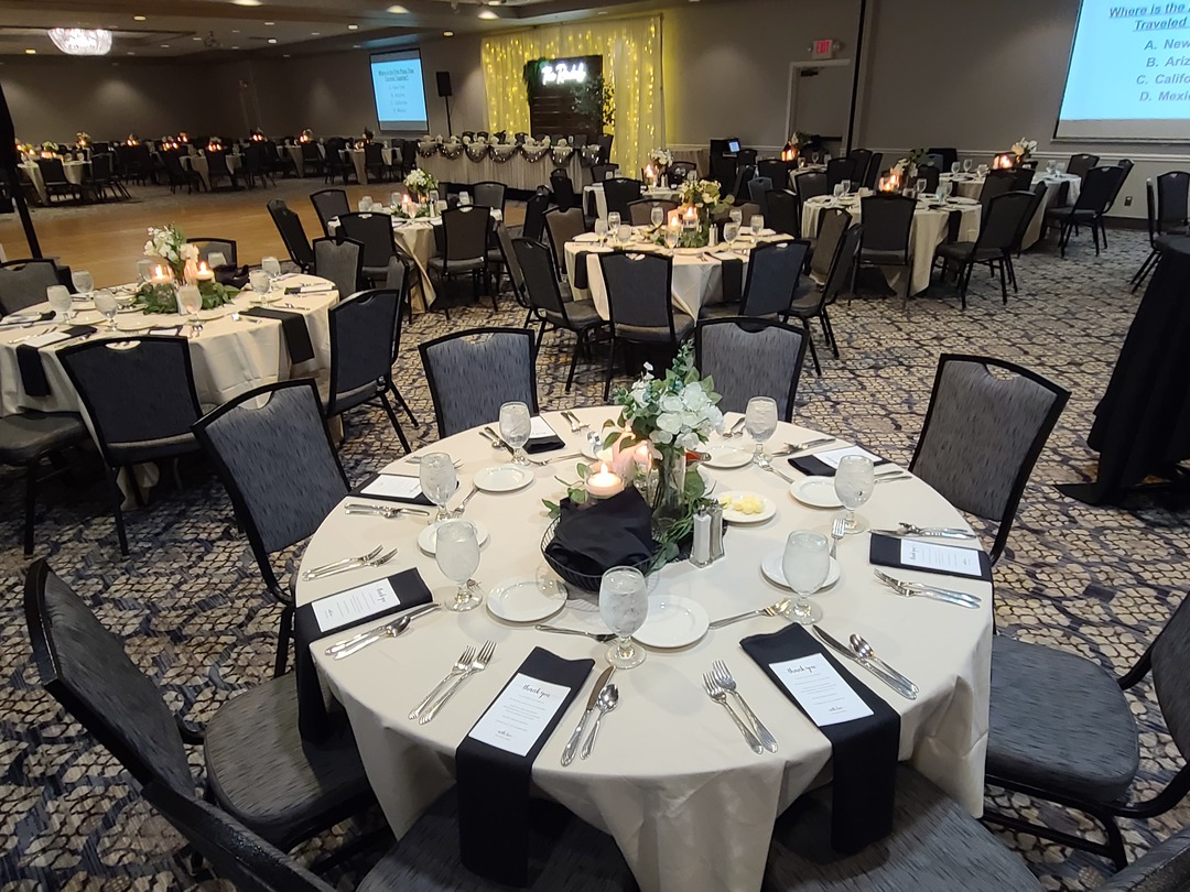 Create an unforgettable evening in our elegant ballrooms. Our Royale Ballroom and Grand Ballroom are both available for wedding receptions. Our Royale Ballroom seats a maximum of 250 guests, and the Grand Ballroom seats a maximum of 325 guests.