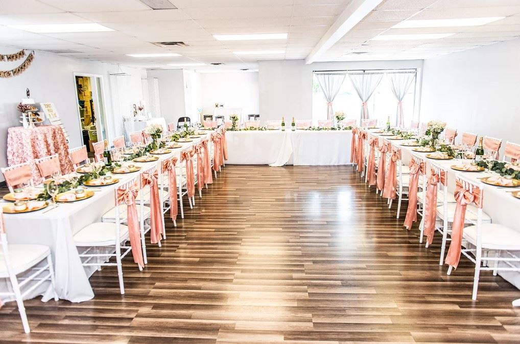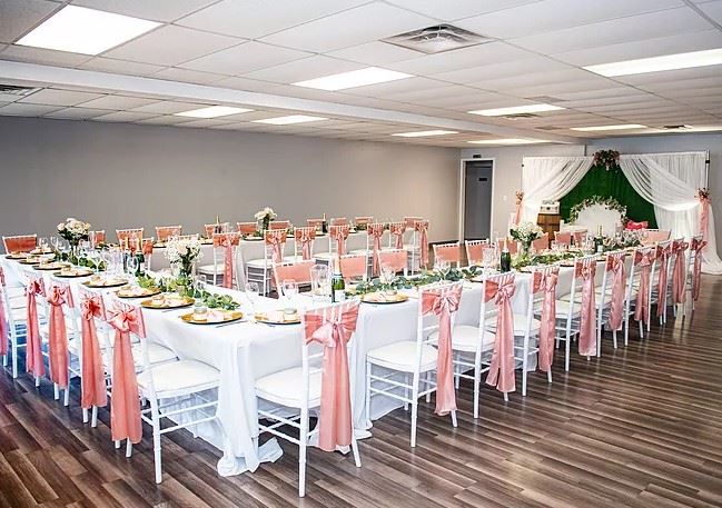 Trusted Treasurez Party Room seats up to 100 guests comfortably. This space is absolutely beautiful and neutral! Trusted Treasurez offers different packages that include linens and custom designed decorations! You may bring in your own food or have it catered.
