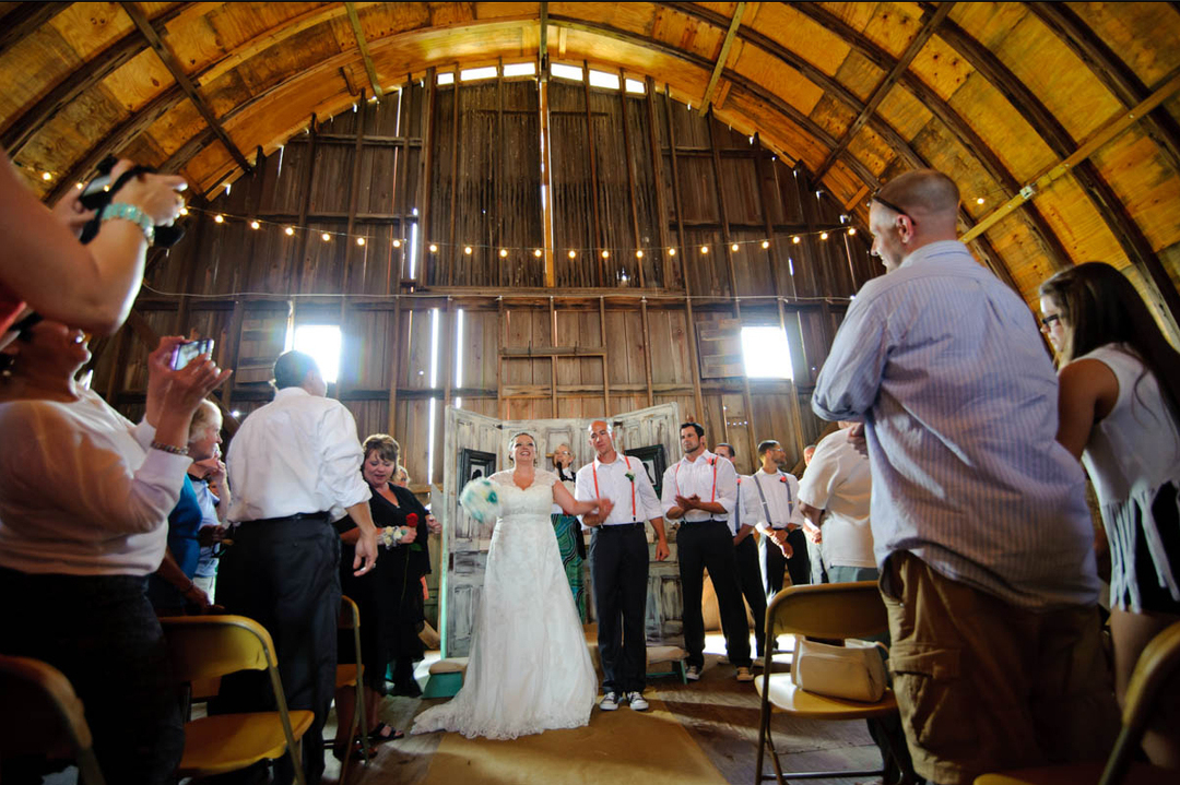 The Barn is a newly restored barn that would be a beautiful setting for your rustic country wedding. The small farm is set on the edge of town close to hotels and restaurants. The Barn itself, was built in the 1920's with the upstairs hay mow revealing a 26 foot arched ceiling with exposed beams. The Barn also features a 5 foot wide stairway going up to the hay mow and a balcony off the back with stairs going down to a concrete patio that is perfect for an outdoor wedding, or reception.
