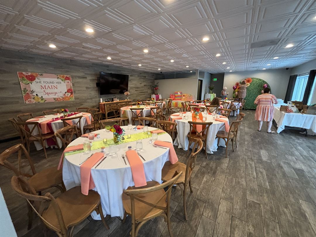 We use only the freshest ingredients and all of our products are made from scratch in our kitchens daily. Our new banquet room in Roscoe that seats 150 guests and offers ample parking, private restrooms and wheelchair accessibility. An 80" flat screen TV offers wireless capability for showing a power point presentation or a photo collage. A private bar in the room for beer, wine & soft drinks.