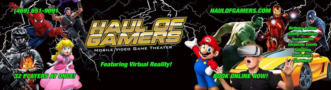 Are you looking to host an event in Rockwall, Greenville, Terrell, Richardson, Wylie, Plano, Frisco, Allen, Dallas, Denton, Little Elm, Arlington, and the surrounding areas of Dallas, TX? Look no further! Check out HAUL OF GAMERS, an innovative, luxury mobile video game truck that brings the FUN right to your home, school, business or church! We provide customized, one of a kind entertainment experiences for kids, teens, and adults! The theater features 8 Wide Screen Hi Def Televisions, Virtual Reality Station, Dancing Station, all the latest game systems, an enormous game inventory, and LED Under Glow effects at night! There is room for up to 32 gamers to play simultaneously inside a 28-foot climate-controlled unit! Also equipped with Satellite TV to host your ultimate gameday tailgate parties! Whether you're hosting a private event or a corporate event, HAUL OF GAMERS will work with you to customize a memorable event that fits your needs! We serve Rockwall County, Kaufman County, Dallas County, Collin County, Denton County, and Tarrant County!