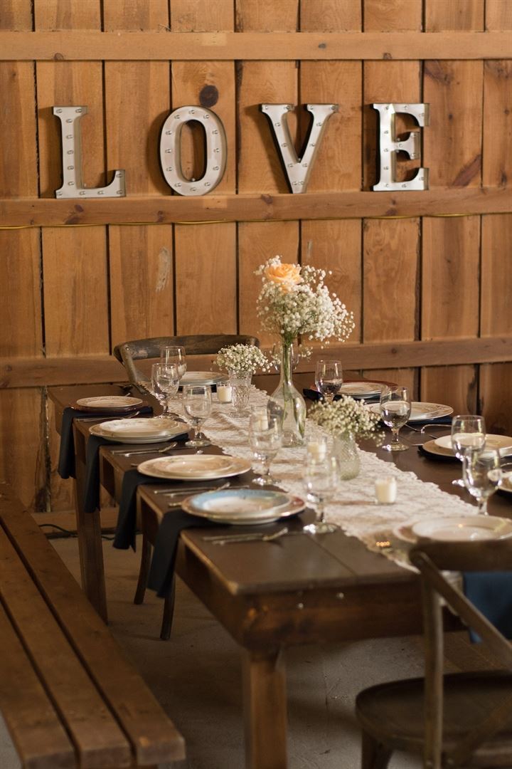 Our 2,500 square foot authentic barn incorporates country ambiance and modern amenities. There is plentiful parking and on-site restrooms. It seats up to 200 guests with plenty of room for dancing and celebrating with family and friends.